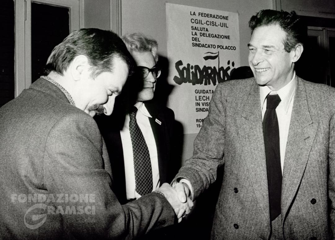 Roma – La stretta di mano tra Lech Walesa e Luciano Lama durante l’incontro tra le federazioni sindacali Cgil, Cisl e Uil e la delegazione di Solidarnosc. Autore della foto: Polimeni, Bruna
